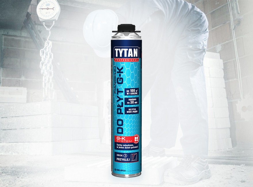 Na tym etapie prac przydatny będzie pianoklej do płyt g-k Tytan. To gotowa do użycia masa, zamknięta w opakowaniu pod ciśnieniem, która przypomina nieco pianki montażowe. Nie trzeba jej przygotowywawać i mieszać, jak ma to miejsce w przypadku mieszanek sypkich. Jest łatwa w nakładaniu dzięki precyzyjnemu dzióbkowi. Składniki masy nie wchodzą w reakcję z płytami, dlatego na ich powierzchni nie pojawiają się przebarwienia. Pianoklej do płyt gipsowych można stosować na powierzchnię betonową, wykonaną z cegieł czy nawet płyt OSB.