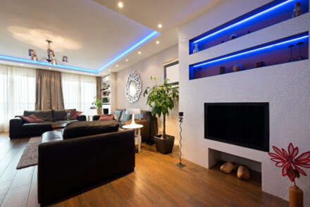 Na montaż sufitu podwieszanego możemy zdecydować się w każdym momencie – nawet w użytkowanym kilka lat domu czy mieszkaniu, ponieważ jest to lekka konstrukcja zazwyczaj z płyt gipsowo-kartonowych lub gipsowo-włóknowych. Co ważne, sufit podwieszany może przybierać różne formy zarówno prostokątne, jak i koła czy fale. Płyty montowane do specjalnych profili dają możliwość umieszczenia nad nimi wszelkich instalacji oraz zamontowanie atrakcyjnego oświetlenia LED m.in. pojedynczych opraw czy oświetlenia liniowego. Pamiętajmy jednak, że zakazane jest rozprowadzanie w suficie podwieszanym instalacji gazowej! Jak wykonać sufit podwieszany z oświetleniem LED?