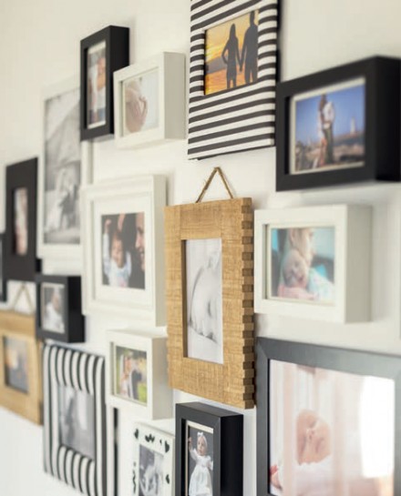 Bardzo często będąc na wakacjach, pstrykamy „co popadnie”. Jakieś miejsca, sytuacje, jacyś ludzie – motywy, które wywarły na nas chwilowe wrażenie. Po powrocie wspomnień mamy wiele i nie wiemy, co wybrać do wywołania. Ale zdjęciowy miszmasz jest również miłym zabiegiem dekoracyjnym. Wywołajmy zatem zdjęcia, które nam się podobają i dostarczają pozytywnych emocji. Umieśćmy je w organizerach ściennych lub nablatowych jak np. modna tablica z drucianej kratownicy. Bardzo fajny efekt gwarantuje również rozpięcie pamiątkowych zdjęć na sznurze przypiętych „bieliźnianymi” szczypczykami (znajdziemy dedykowane na ten cel na stoiskach dekoracyjnych). Prezentacja mieszanych zdjęć bardzo estetycznie i porządnie wygląda w ramkach zespolonych, tzw. galeriach. Tworzy je kilka opraw o różnych lub takich samych rozmiarach połączonych ze sobą w jeden gotowy do powieszenia zestaw. Możemy tu zabawić się doborem tematu na zdjęciach, ale też połączyć przypadkowe fotografie bliskich i miejsc w urozmaicony wakacyjny kolaż. Efektownym zabiegiem prezentacji mieszanych migawek z wakacji jest zastosowanie różnorodnych, czasem nawet zabawnych w formie ram (oryginalną ramkę możemy przecież też przywieźć z wakacji jako pamiątkę). Kolorowe, mieszane w fakturze i rozmiarze ramki zestawione ze sobą na dużej tafli białej ściany będą energetycznym zabiegiem aranżacyjnym.