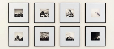 Bardzo dobrym rozwiązaniem na ciekawą kompozycję ścienną jest wybór takich samych ram, o identycznym wykończeniu – w tymch samych lub w różnych rozmiarach. Mogą być to ramy drewniane, np. z sosnowego drewna lub antyramy, gdzie obramowanie jest niewidoczne. Zebranie zdjęć tego samego motywu w różnych ujęciach, np. morskiego brzegu czy uchylającego się od wiatru drzewa, góry o różnych porach dnia, czy ciekawej architektonicznie bryły za dnia i w nocy, będzie wspaniale budowało jakąś historię, tworzyło nastrój, nadawało dekoracji pewnej dynamiki. Istotą takiego pomysłu jest prostota. Ramy mają za zadanie jedynie uwypuklić obraz i przekaz. Warto też, by wiszące obok siebie obrazy były ustawione w porządku pionowo lub poziomo. Miszmasz będzie dobrym rozwiązaniem, ale dla innej prezentacji.